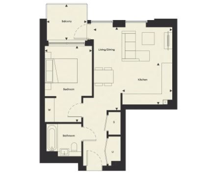 The generous bedroom offers comfort and style, complete with built-in wardrobes and room for additional furnishings. A sleek contemporary bathroom with premium fittings completes this desirable home.