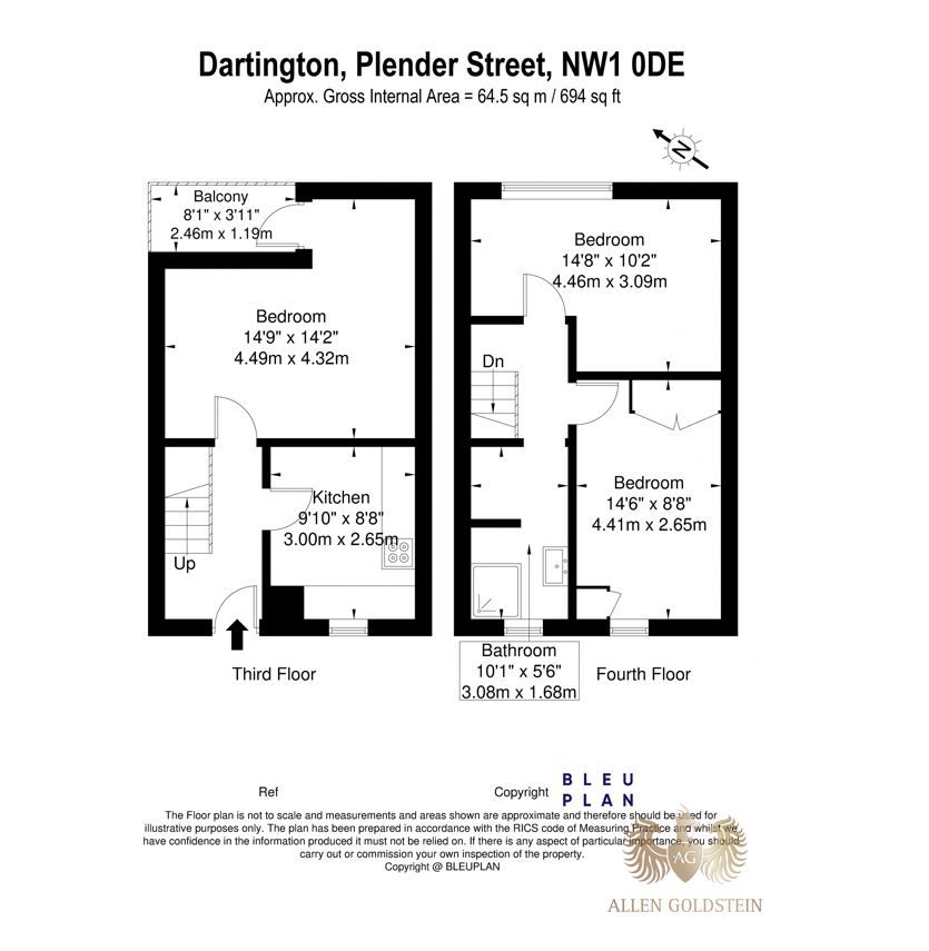 The flat comprises of a spacious, bright reception room that can be converted to the third bedroom.